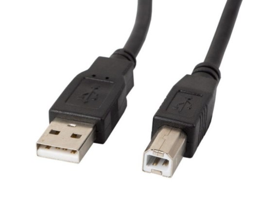 Wysokiej jakości kabel USB 2.0 Lanberg koloru czarnego, do zastosowania połączenia między komputerem a drukarką, skanerem i innymi urządzeniami multimedialnymi/peryferyjnymi.